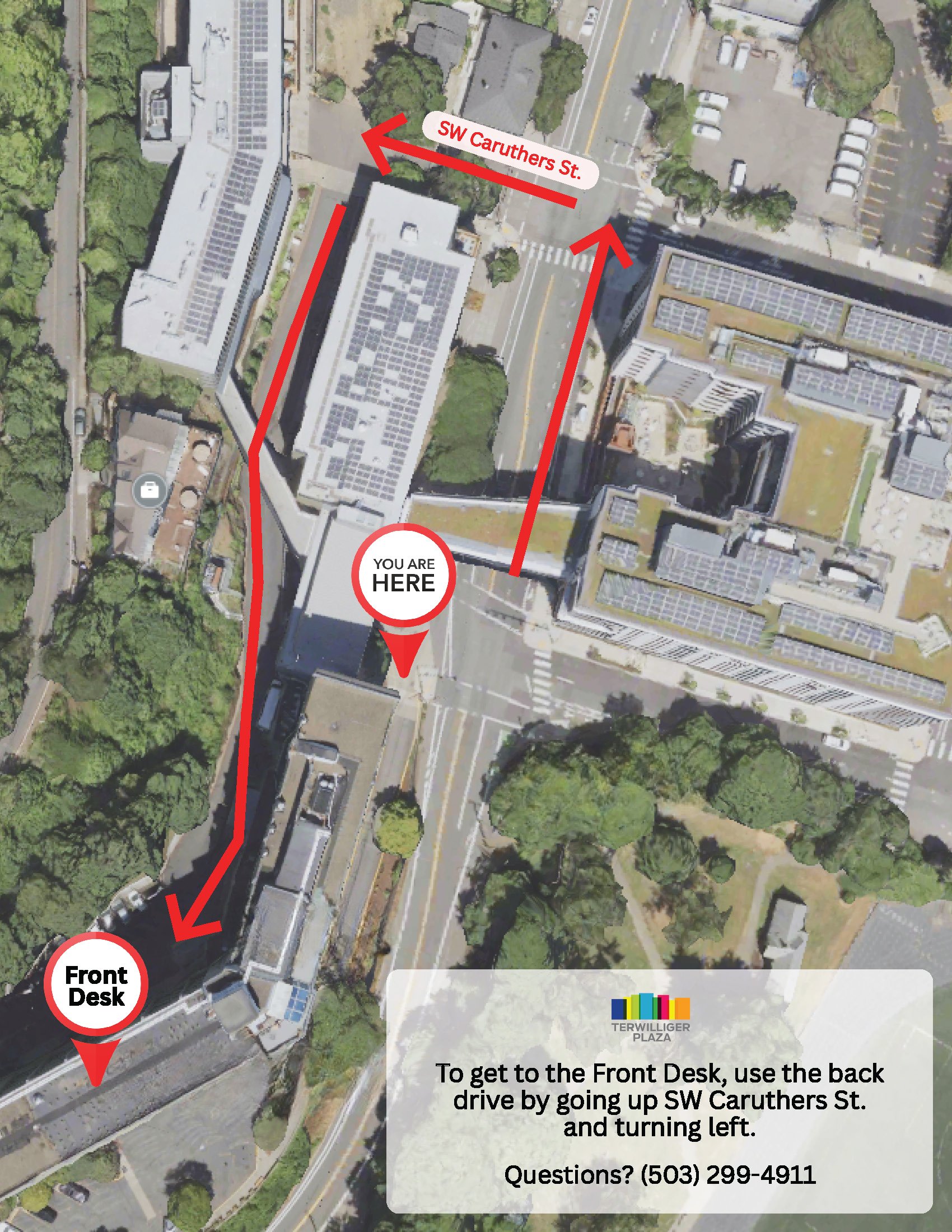 Front Desk AccessIf the ramp is closed, please use the alternate route shown in the map below to reach the front desk. Download Map